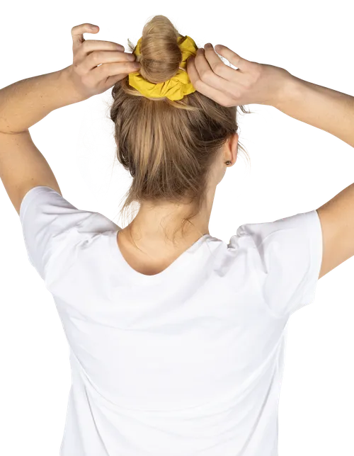 Das Scrunchie ist ein vielseitiger Haarschmuck und lässt sich passend zu verschiedenen Outfits gestalten. Er ist ideal zum Binden verschiedener Frisuren und verhindert durch das weiche, Haarschonende Material Knicke im Haar. Auch am Handgelenk getragen bietet er ein praktisches und stilvolles Accessoire.